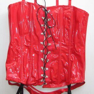 Red shiny vinyl lace up front with silver grommets bustier corset