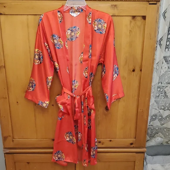 Stylish red kimono robe Perfect for lounging.Feels like silk, no content tag. New without tags.