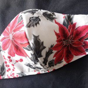 Red Silver Gilding Poinsettia Christmas Handmade Face Mask Masque 100% Cotton