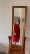 Elegant red sleeveless dress featuring a gold trim. Perfect for special occasions.