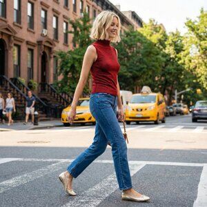 #redtop #sleevelessknit #turtlenecktop #lurextop #metallicknit #shimmertop #eveningwear #partyoutfit #chicstyle #elegantlook #wardrobebasics #layeringpiece #modernclassic #boldstyle #femininefashion #europeanstyle #poshmarkfashion #poshmarkcloset #holidayoutfit #cocktailwear