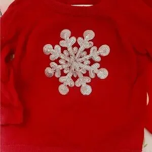 Vibrant red sweater with a pretty silver snowflake design. Ideal for the holiday season.