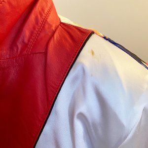 A gorgeous buttery soft bright red blazer style leather jacket from Danier Leather.