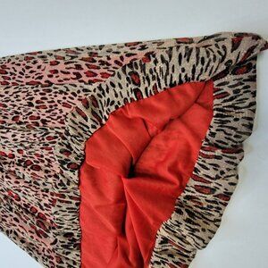 Color- Black and dark bright red on a tan and reddish background print-stylized animal print