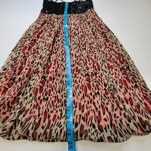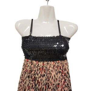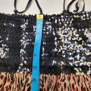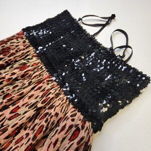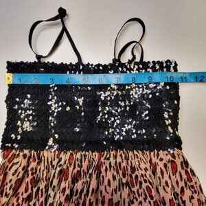 Spaghetti Strap Sparkly Red Animal Print Mini Dress with a stretch sequin Bustier