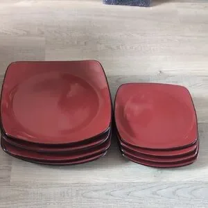 Enhance your dining experience with this elegant red square dinnerware set. Perfect for any occasion, this set adds a touch of sophistication to your table.