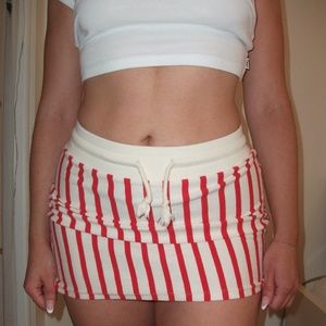 Zara red and cream striped mini skirt Cotton, size medium, draw string waist 10/10 condition
