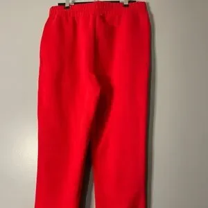 Never worn red sweatpants. In a size Medium. I purchased these from H&M a month or so ago and did not like how they fit. They are cuffed on the bottom and have pockets. They are very cute and I wish they fit haha.