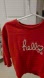 Cozy red sweatshirt featuring an embroidered 'Hello' and cherry design. Perfect for casual wear.