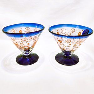 Two Kosta Boda Royal Caribbean Hand-Blown Martini Glasses. Red Swirl With Blue Trim, Stem & Base. In Very Nice, Pre-Owned Condition. Other Than A Couple Of Factory Bubbles There Are No Issues That I Could See. However Due To Use/Age or Storage, There Could Be Some Minor Scratching That I Might Of Missed. Made In Sweden. 4.5 In Height, Mouth Is Just Over 5" In Diameter & Base Is app. 3.25". Both Glasses Are Marked 2009 GIL NY.