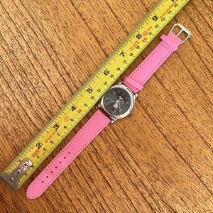 Quartz accurate with a new battery fitted today. New pink band. Good condition with a hairline mark on the crystal at 5.30 on the dial. Clearly shown in the photographs but almost invisible in real life!