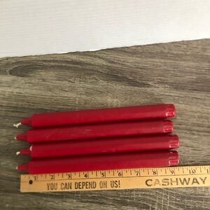 Enhance your home party ambiance with these elegant red taper candles. Perfect for creating a warm and inviting atmosphere. Listing includes four identical red taper candles each approximately 9 1/4” long.