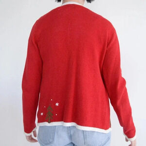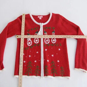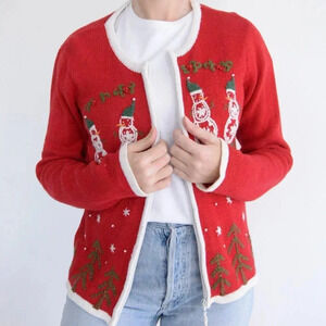 Red Ugly Christmas Sweater Zip Up Knit Festive Snowman Holiday Cardigan S