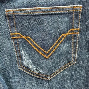 Red Valentino Bedazzled belt loop distressed straight leg jeans.