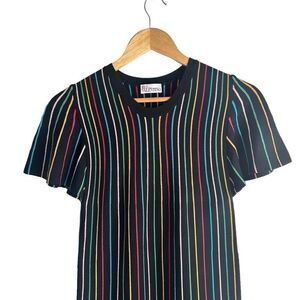 Red Valentino Short Sleeve Black Knit Rainbow Stripe Shift Dress