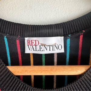 In excellent condition. RED VALENTINO Black Knit Tent Dress with Multi-Colored Stripes SIZE Small.