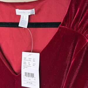 Red Velvet Midi Dress London Times | Coquette Holiday Party Glam Burgundy
