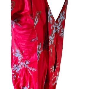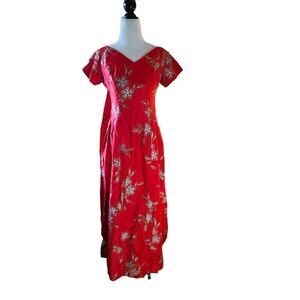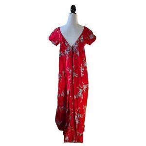 Red Vintage 60s Hawaiian Cotton Maxi Dress Kaftan Muumuu 70s Waikiki