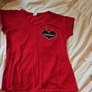 Bright red womans' 1812 support shirt. Gildan shirt, confortable and lots of stretch. Size small but fits to large. Perfect for everyday wear.