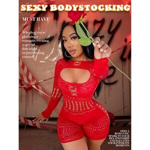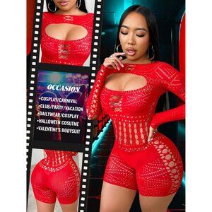 Red Women Sexy Fishnet Bodysuit Bodystocking Tights Bodycon Jumpsuit