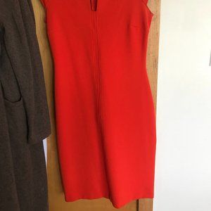 Super flattering, sleeveless, knee length, red Zara shift dress. It has quite a bit of stretch and is very comfortable.