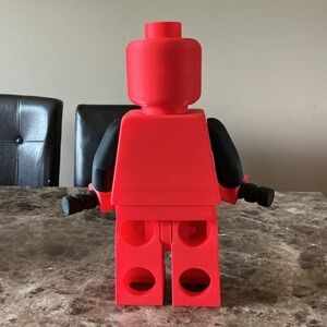 Red and black large 16” tall handmade Dead pool action figure holding 2 tri colored swords. Bold and striking design. Head, arms and legs move- removable swords, can sit or stand. He has small imperfections as it was handmade.