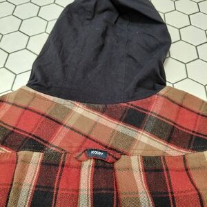 Red and Black Flannel Plaid Casual Button Down Shirt with Hood