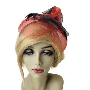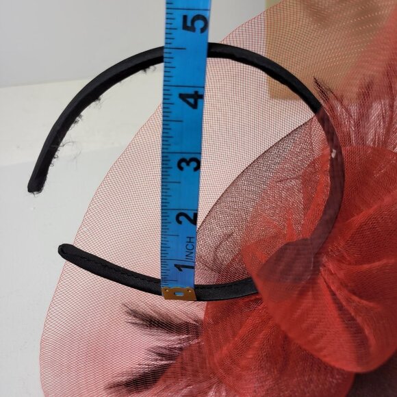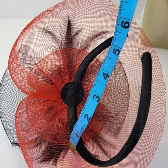 Red and Black Headband Fascinator with Black and Red Rosettes Black Feathers