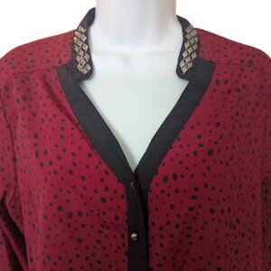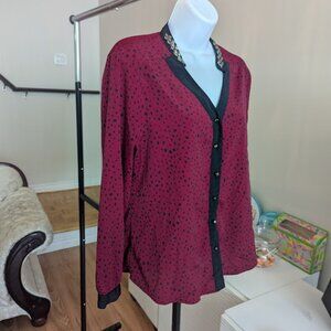 Red and Black Long Sleeve Printed Blouse Size Medium Petite
