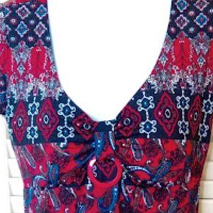 --- Red and Black Paisley Mosaic Print Long Top Size XL
