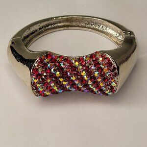 Red and gold tone crystals adorn this gorgeous cuff bracelet