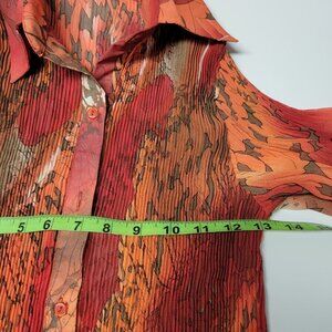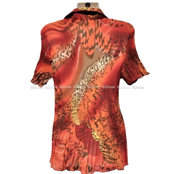 Red and Orange Top Short Sleeve Blouse Accordion Lightweight Size XL/TG - NEW