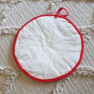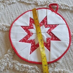Add a touch of charm to your kitchen with this red and white star pattern quilted pot holder. Perfect for protecting your hands and surfaces.