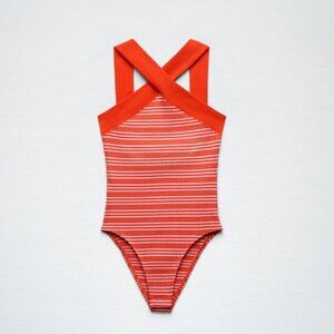 Red and White Striped Halter Bodysuit