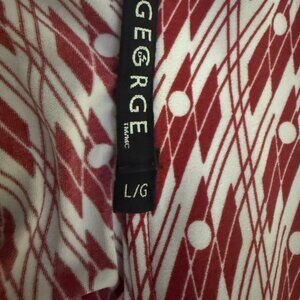Red and White Wrap Blouse Size LG George EUC Flattering Fit