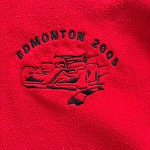 Red and black Edmonton fleece sweatshirt w/ drawstring hem