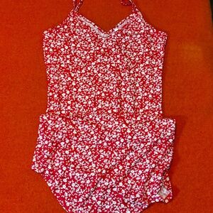 Red and white flowers ultra soft spaghetti straps lounge dress night gown NWT