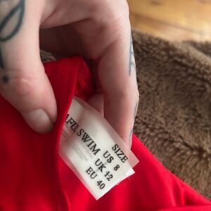 Bright and stylish red bikini top. Perfect for fun days at the pool, beach, or tanning in the sun