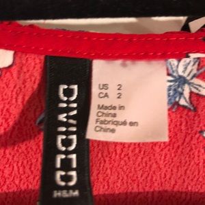 Cute red blouse with blue flowers.