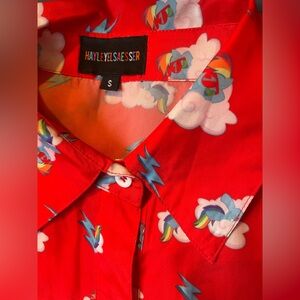 Red button down with Fun Print