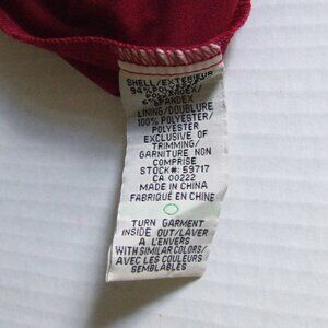 Vintage Jessica red evening dress with beaded halter strap. Calf length. Pull over or step in. It is marked a size 14. Stretchy! Exterior is 94% polyester and 6% spandex. Lining is 100% polyester. Plastic bead embellishment. 2 red cloth covered buttons at the back of the neck. New with tags. 1990s.
