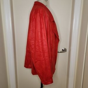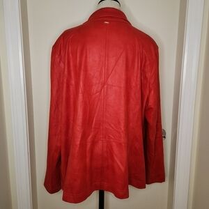 Made in France, soft supple textured vegan suede leather (feels so real), faux front vertical pockets, structured lightly padded shoulders, New Without Tags Unworn Condition, Plus Size 22 (2X), Pit-25, Shoulder-18, Sleeve-25, Length-26-30. *model shows current style (sold out) in stores