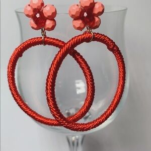 Fashion Jewellery -Red flower hoop dangling BP earrings