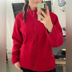 Size XL red jacket. Usually I wear medium and it fits me like a large. Still in very good condition. The color is vibrant, but the interior is a bit faded.