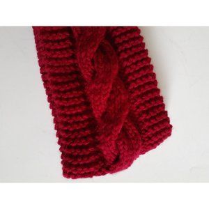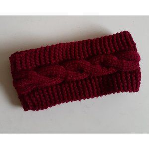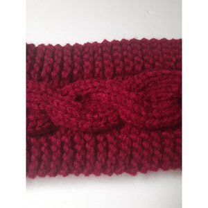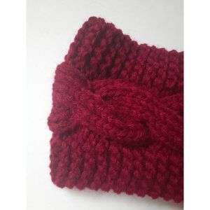 handmade knitted women's headband, winter chunky red/burgundy colour yarn ear warmer, vegan friendly cozy warm size medium headband, ready to ship