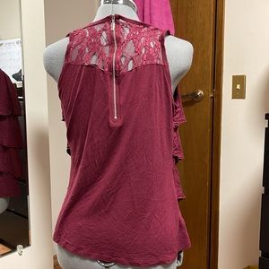 Ricki’s Red layered tank top with lace and zipper back. Size medium