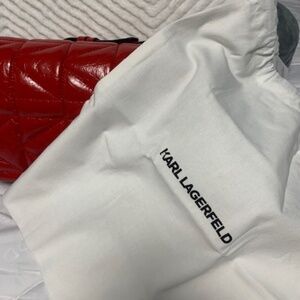 New with tags, red, gold chain strap plus handle. Karl Lagerfeld
