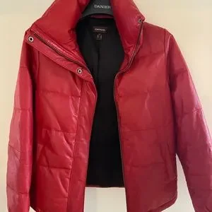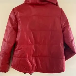Down filled, red leather, bomber jacket. Brand new condition.