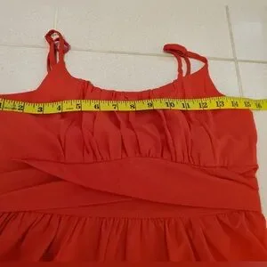 This red mini dress features elegant ruffle details, adding a playful and stylish touch. Brand new but missing the price tag, it offers a flattering fit, perfect for a night out or special occasions.