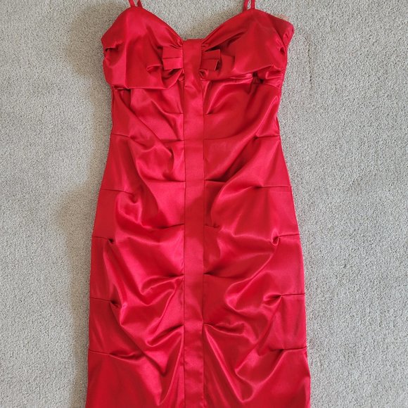 Red mini dress with bow. Bsmart brand size 7-8, fits small